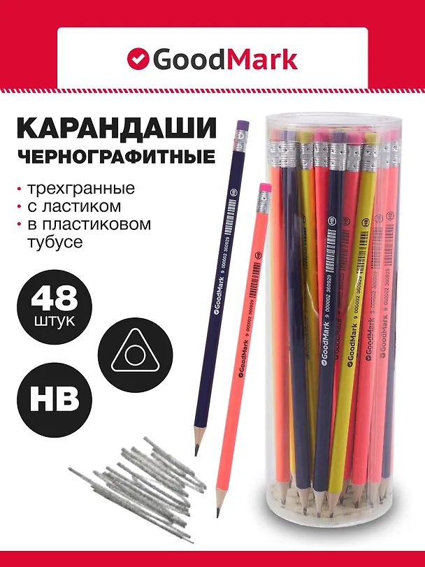 Набор простых чернографитных карандашей GoodMark серии Neon — хороший вариант для тех, кто создаёт большое количество записей, рисунков или чертежей.
