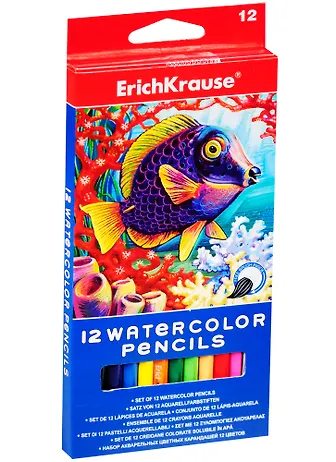 Карандаши цветные 12цв акварельные с кисточкой, к/к, ERICH KRAUSE