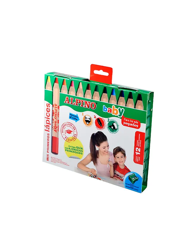 Карандаши цветные 12цв "BABY" повышен. мягкости, толстые, точилка, к/к, подвес, ALPINO