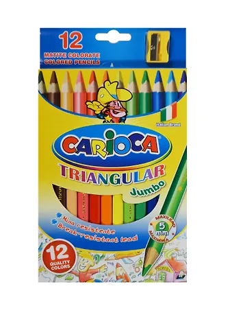 Карандаши цветные 12 цветов "CARIOCA JUMBO" трёхгранные, с точилкой, картонная коробка, подвес, Universal