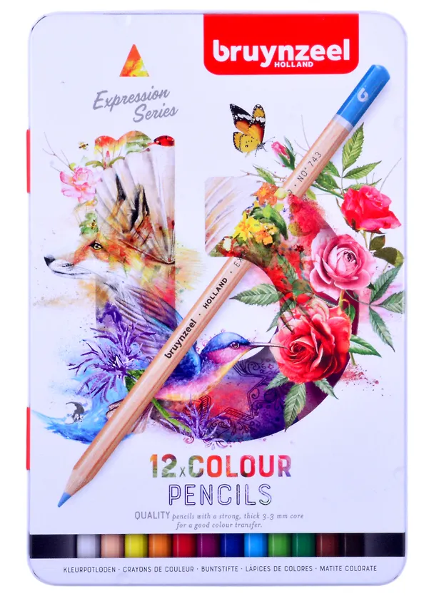цветные карандаши линейки "Expression" производятся с использованием высококачественных пигментов, благодаря чему обладают ярким насыщенным цветом. Не нужно прилагать усилий, чтобы добиться сочных оттенков, карандаши пишут ярко на бумаге любого типа. Грифель толщиной 3,3 мм. надежно защищён двойной проклейкой с корпусом из высококачественной древесины. Карандаши легко затачиваются и не крошатся в процессе работы. В наборе 12 цветов, поставляются в металлическом пенале.