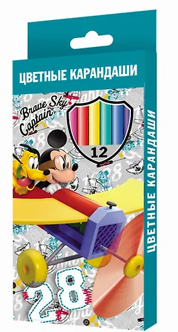 Карандаши цветные 12цв "Mickey Club House Aviator" к/к, подвес, Disney