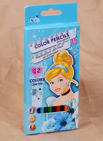 Карандаши цветные заточенные "Принцессы" .12 цветов .В картонной коробке