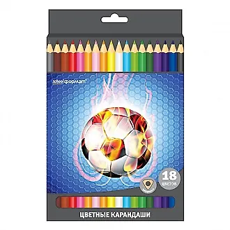 Карандаши цветные, 18 цветов, "Футбол", трехгранные, картонная коробка, подвес, schoolФОРМАТ