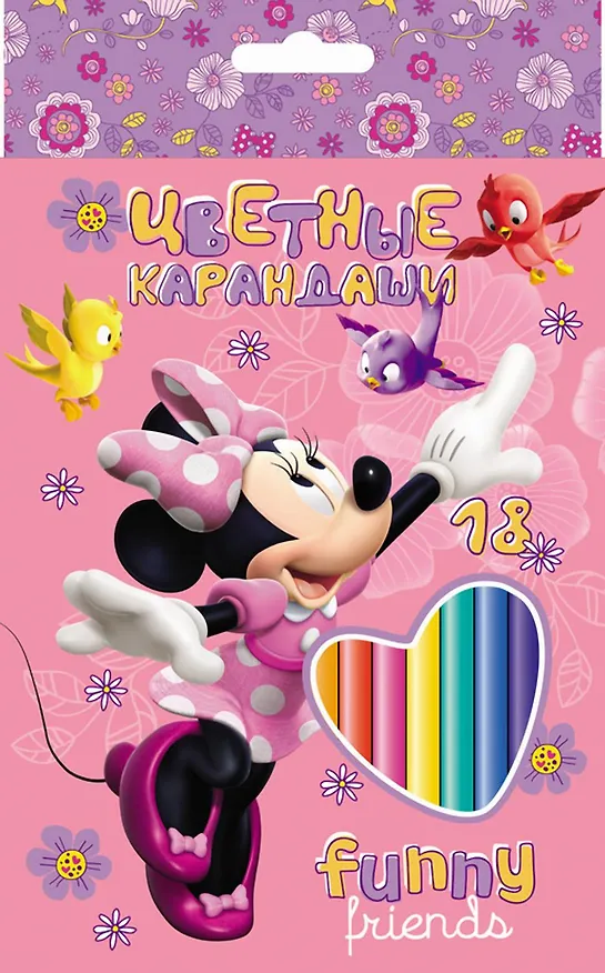 Карандаши цветные 18цв "Minnie Mouse Club House for girls" к/к, подвес, Disney