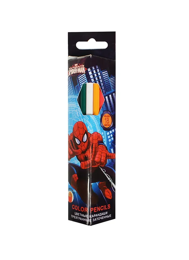 Карандаши цветные 18 цветов "Spiderman" треугольные, картонная коробка с подвесом, Disney