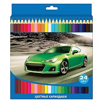 Карандаши цветные, 24 цвета, "Машины", шестигранные, картонная коробка, подвес, schoolФОРМАТ