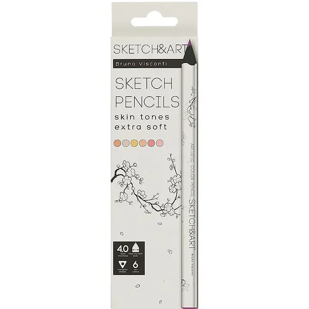 Карандаши цветные 6цв "SKETCH&ART" Портрет утолщенные, грифель 4мм, к/к, Bruno Visconti