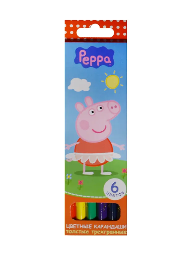 Карандаши цветные 6 цветов "Свинка Пеппа" трехгранные, толстые, картонная коробка, подвес, Харис