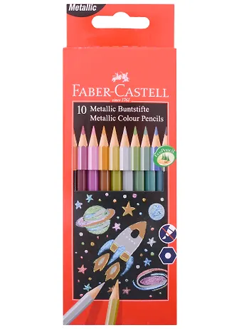 Карандаши цветные Faber-Castell, 10цв., металлик, заточен., картон. упак., Faber-Castell