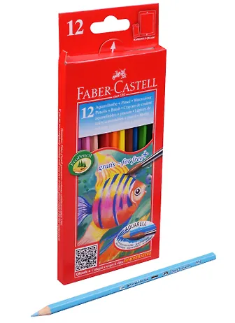 Набор акварельных карандашей шестигранной формы серии «Рыбки» от легендарного немецкого производителя Faber-Castell. Набор состоит из 12 карандашей и кисти.
