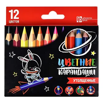 Карандаши цветные Феникс+, "Зайка-Космонавт", 12 цветов