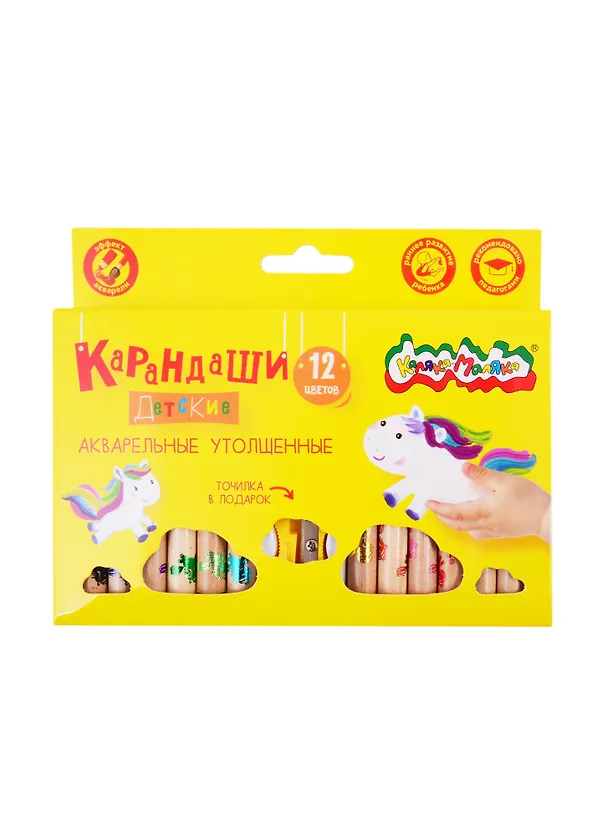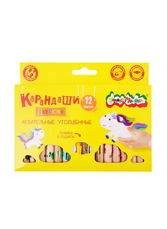 Карандаши цветные 12цв акварельные "Каляка-Маляка" - это отличный. Они имеют яркие и насыщенные цвета, которые легко смешиваются, создавая плавные переходы и оттенки. Толстый диаметр карандашей обеспечивает удобство и комфорт при рисовании, а точилка, входящая в комплект, позволяет легко затачивать карандаши.