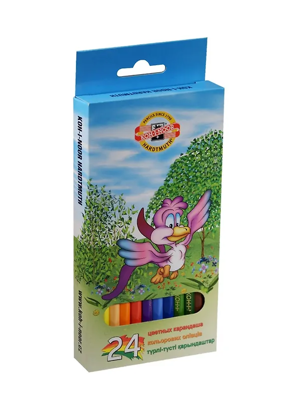 Набора из 24 цветов достаточно для рисования, все нужные цвета в нем есть. Карандаши имеют средней мягкости грифель, при рисовании он не крошится. Хорошо затачиваются канцелярским ножом и любой точилкой. Надежный, известный мне на протяжении нескольких десятков лет, производитель Koh-i-noor.