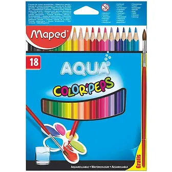 Карандаши цветные Maped, ColorPeps Aqua, акварельные 18 цветов с кисточкой