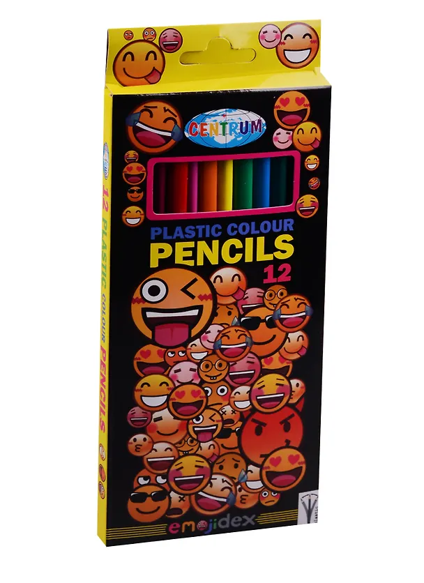 Карандаши плавной, трехгранной формы. Отлично заточены, веселая упаковка со смайлами, заряжают позитивом, выглядит празднично. Упаковка голубая, а не черная как заявлено на сайте. Пластик вокруг грифеля темный, черный, это необычно. Не уверена, что это всем понравится. Цвета карандашей яркие, приятные, гамма 12 цветов выдержана. Грифель твердый, хорошо точатся карандаши.