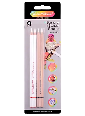 Первый раз беру такие карандаши, купила из любопытства, посмотреть, что за материалы. По моим представлениям они должны сглаживать границу между разными цветами. В целом интересный продукт, но я не совсем поняла его действия, не смешивает сильно цвета, дает лишь глянцевый блеск на поверхности рисунка, для этого и использую его акцентно. Тонкую бумагу рвет, в скетчбуке нормально наносится.