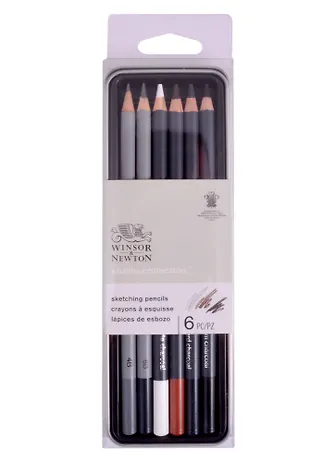 Карандаши Winsor&Newton- это карандаши высокого качества с прочным грифелем. Наборы тщательно подобраны по цветам и типам карандашей. Стильная металлическая упаковка идеально подходит для использования в дороге. Упаковка из 100% перерабатываемого материала. Карандаши видны благодаря прозрачной упаковке. В набор входит 2 чернографитных карандаша твердости 4В, 8В, белый мел, угольный, черный, сепиа в металлическом пенале.