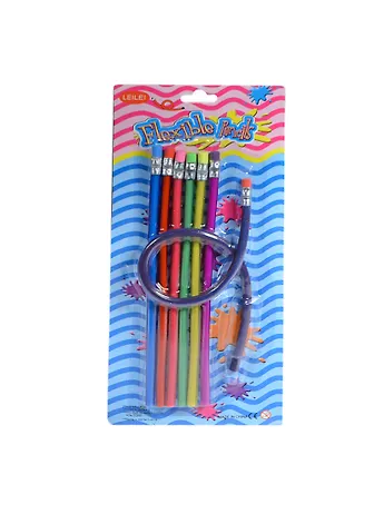Набор карандашей чёрнографитных "Гнущиеся" с ластиками, (7штук) не оставит равнодушным ни одного ребёнка. Яркие и оригинальные карандаши, умеющие принимать любую форму, способствуют развитию моторики пальцев и фантазии. Легко затачиваются, отлично пишут – эти карандаши ваш ребёнок ни за что не захочет выпускать из рук!.