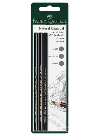 Карандаши угольные "Pitt", 3шт., мягкий/средний/твердый, блистер, Faber-Castell