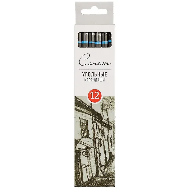 Карандаши угольные, «Сонет», мягкие, 12 штук
