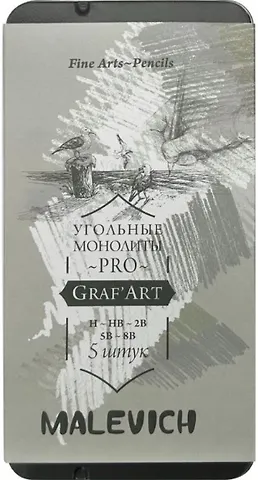 Карандаши угольные 05шт монолитные "Graf'Art PRO" H, HB, 2B, 5B, 8B, Малевичъ
