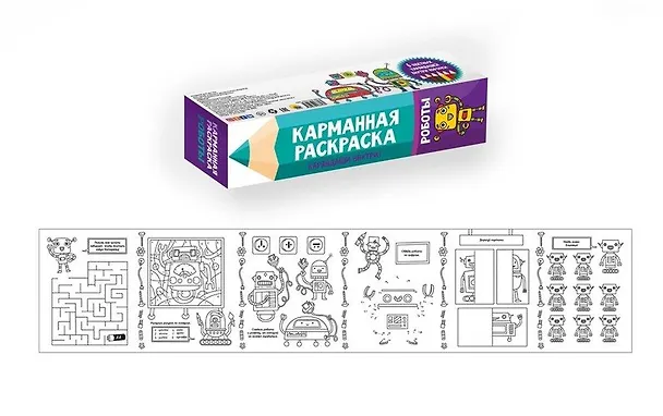 "Карманная раскраска" станет отличным помощником родителям, которые отправляются в дорогу с детьми. Теперь не придётся брать с собой книжку с раскрасками и цветные карандаши - потому что всё это умещается в компактной коробке "Карманной раскраски"! Внутри каждой коробки находятся тематическая раскраска с заданиями и набор карандашей. Оборот раскраски заламинирован - поэтому её легко раскрашивать на любой поверхности, даже просто на коленях. Интересные задания обязательно увлекут ребёнка и помогут скоротать время в очереди, на вокзале или в транспорте.