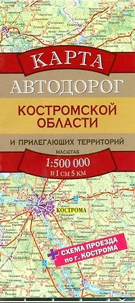 Карта автодорог Костромской области и прилегающих территорий (1:500тыс).