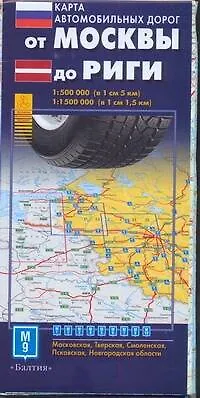Карта автомобильных дорог от Москвы до Риги (1:500тыс) (мягк) (раскладушка) (АСТ)