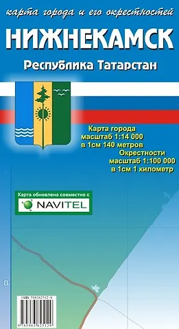 Карта города Нижнекамск и его окрестностей Республика Татарстан (1:14 000/1:100 000) / (мягк). (Карта города и его окрестностей). (раскладушка) (Уралаэрогеодезия)