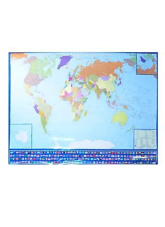 Политическая карта мира с флагами, Крым в составе РФ (на картоне с матовой ламинацией) В нижней части карты даны флаги государств мира. Масштаб карты 1:26 000 000 Формат 1 325 х 970 мм.
