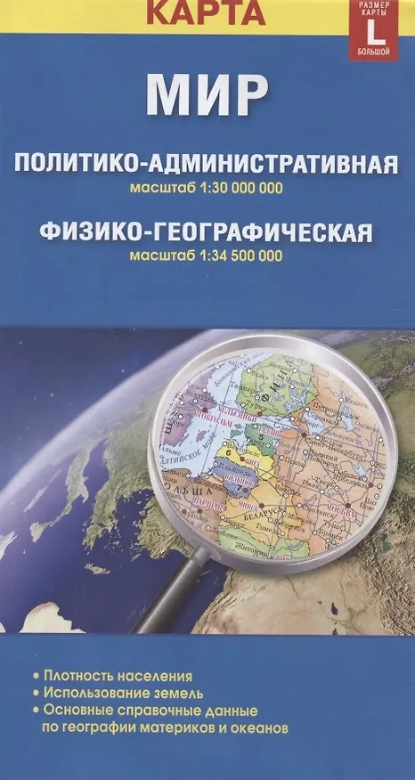 Карта Мир политико-административная, физико-географическая (1:30000000/1:34500000). Размер карты L (большой) (с новыми границами)