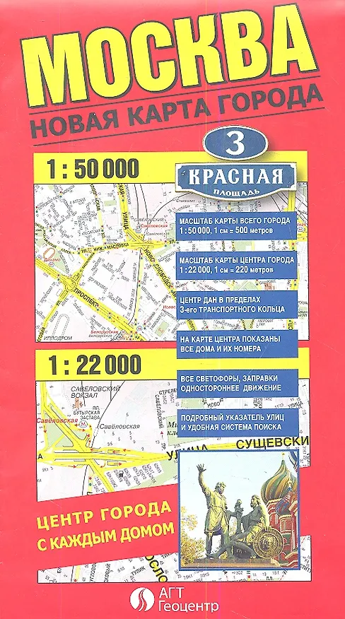 Карта, Москва, Новая карта города, 1:50 000, 1:22 000, центр города с каждым домом