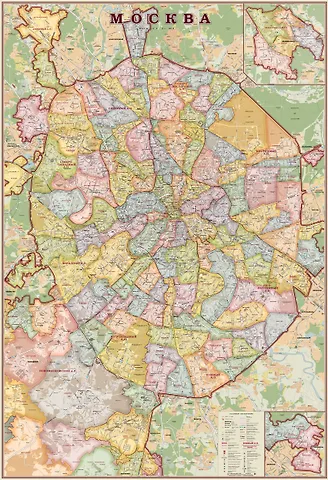 Настенная карта Москвы 1,07*1,57 м в стиле "экодизайн", матовая ламинация. Современная информация, новые станции метро, подписи улиц и основных достопримечательностей, цветом выделены районы Москвы. Качественная полиграфия.