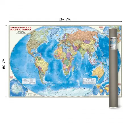 Карта настенная "Политическая карта мира" в тубусе, М1:25 млн, 124х80 см