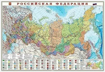 Карта настенная. Российская Федерация. Субъекты федерации, М1:8,2 млн, 101х69 см