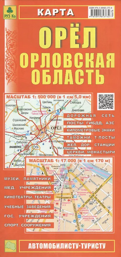 Карта Орел Орловская область (1:500тыс/1:17тыс) (Кр389п) (м) (раскл) (Руз Ко) (2015)