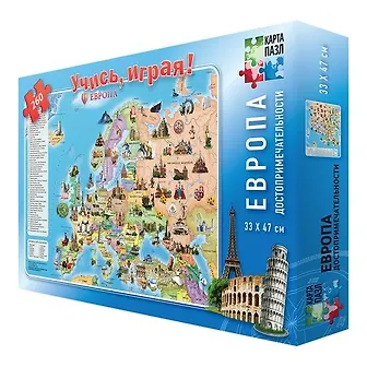 Карта-пазл. Европа. Достопримечательности. 260 дет. 33*47см