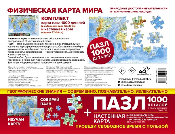 Данный набор будет незаменим для школьников, изучающих географию, а также для людей, готовых разнообразить свой досуг. Займитесь сбором полезной головоломки всей семьей!