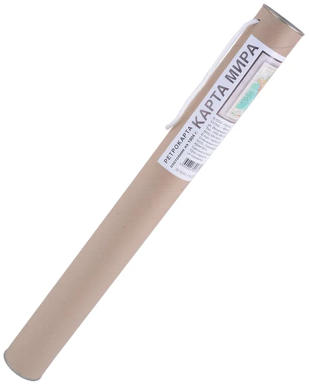Карта-ретро Мира, состояние на 1904 г. в картонном тубусе с подвесом