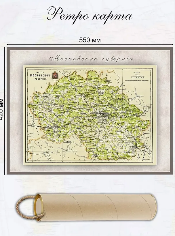 Карта-ретро Московской губернии, состояние на 1896 г., в картонном тубусе с подвесом