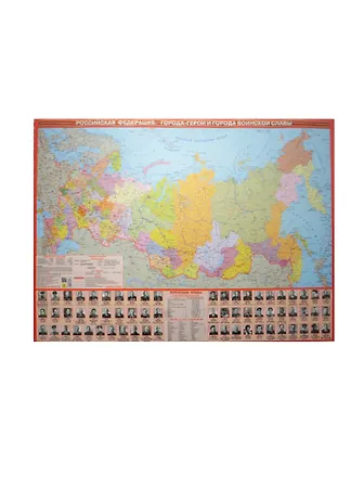 Карта Российская Федерация Города-герои и города воинской славы (лист) (1:14,5 млн.) (Кр574п) (2015)