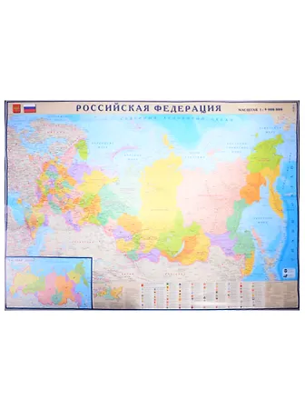 «Карта. Российская Федерация. Масштаб 1: 9 000 000 + часовые зоны 1: 29 000 000» и выбрать удобный способ его получения: самовывоз, доставка курьером