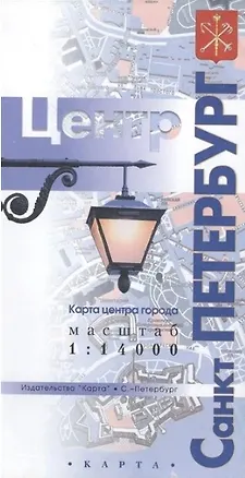 "Санкт-Петербург. Карта центра города. 1: 14000": Подробная карта центра С.-Петербурга с аксонометрическими рисунками главных памятников архитектуры. Показаны объекты культуры, социальные доминанты; полностью отражена сеть улиц. Дополнительно: Панорама-рисунок исторического центра; сведения о музеях, театрах, памятниках архитектуры и др; перечень названий улиц, схема метро. Формат: 90х170 мм. Формат разворота: 900х680 мм. Масштаб: 1:14 000.