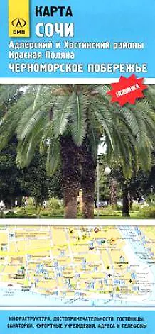 Карта Сочи Адлерский и Хостинский районы Красная поляна Черноморское побережье (1:17 000 / 1:30 000 / 1:160 000) (раскладушка) (ДМБ)
