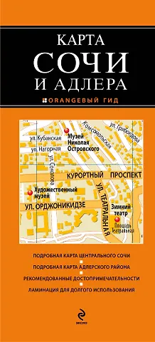 На карте Адлерского района (М 1:17 000) вы найдете адреса кварталов, основные и транзитные проезды по городу, объекты социально-культурного значения, места отдыха. Кроме того, приведен полный перечень улиц города.