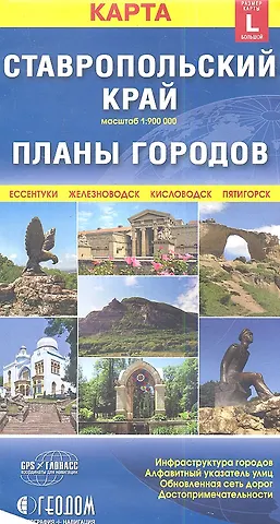Карта Ставропольский край + Планы городов (размер L) (1:900000). Инфраструктура, алфавитный указатель улиц, обновленная сеть дорог, достопримечательности