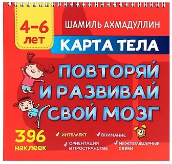 Родители обычно много времени уделяют развитию интеллекта ребенка, забывая о тесной связи мозга с телом. Блокнот-тренажер для детей 4-6 лет от Шамиля Ахмадуллина - психолога, педагога, физика, разработчика более 40 методик эффективного обучения детей, основателя школ скорочтения и развития памяти у детей - станет отличным помощником при подготовке ребенка к школе. Простые движения, выполнить которые на первый взгляд очень легко, тренируют межполушарные взаимодействия, улучшают координацию и ориентацию в пространстве, тренируют внимание и память, благоприятно влияют на мышление и речь, развивают у ребенка восприятие схемы тела (карты тела). 396 ярких наклеек (264 для мотивации и 132 для творч
