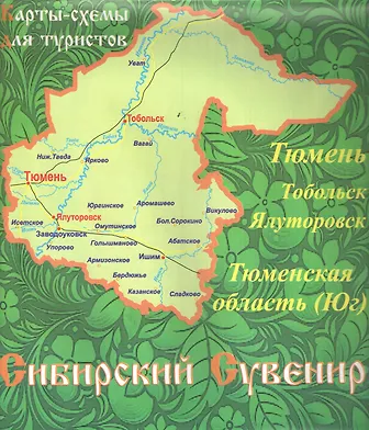 Данные карты-схемы для туристов охватывают: город Тюмень, Тобольск, Ялуторовск и юг Тюменской области.