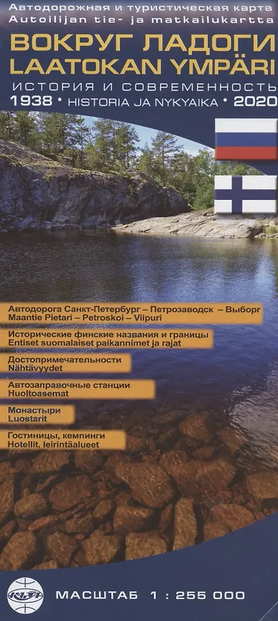 Карта Вокруг Ладоги. Масштаб 1: 255 000 (на финском и русском языках)